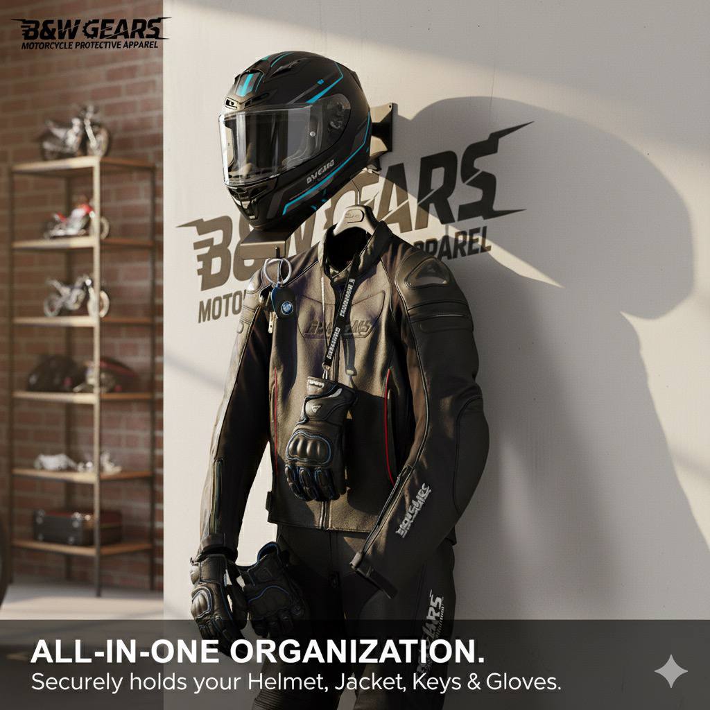 Motorcycle Helmet Holder & Jacket Hanger Wall Mount (Biker Gear Organizer)